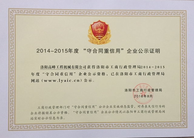 <<返回上一頁(yè) 2014-2015守合同重信用企業(yè)1 發(fā)布時(shí)間:2021-02-06點(diǎn)擊:2117 上一篇:洛陽(yáng)市科學(xué)進(jìn)步獎(jiǎng)證書(shū) 下一篇:2014-2015守合同重信用企業(yè)